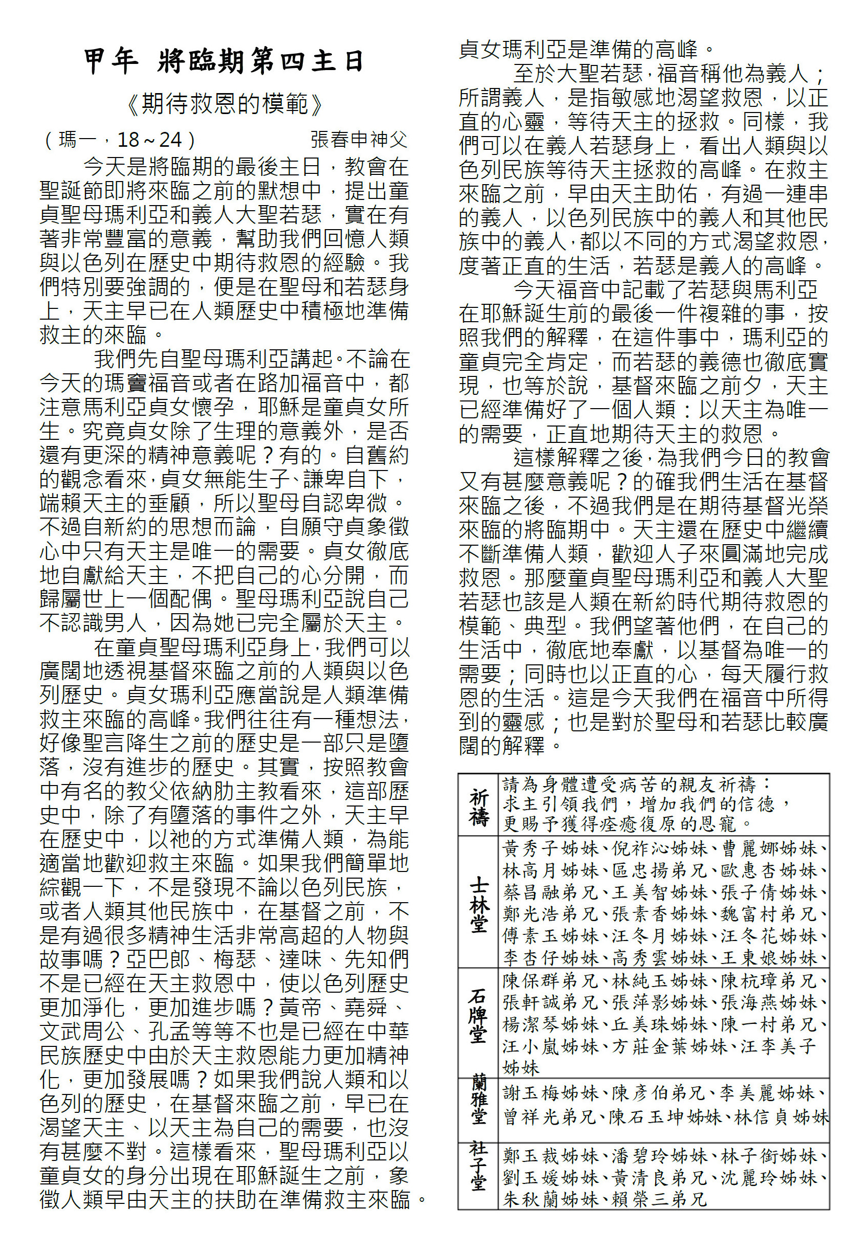 甲年將臨期第四主日-共融堂訊